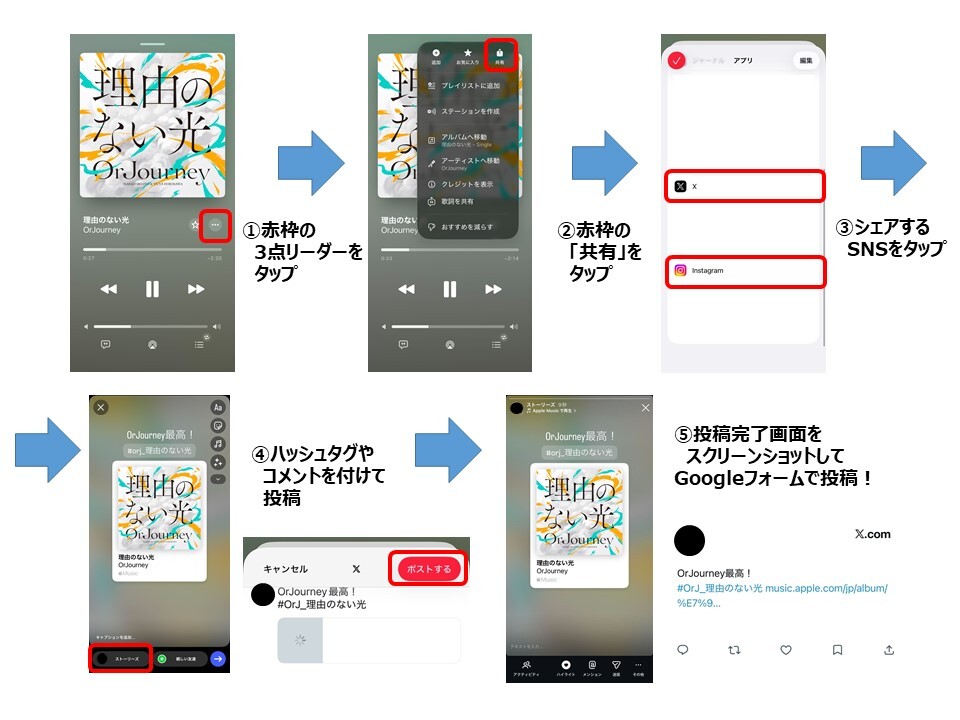<Instagramストーリーズ>または<X>に「#OrJ_理由のない光」を付けて楽曲をシェア