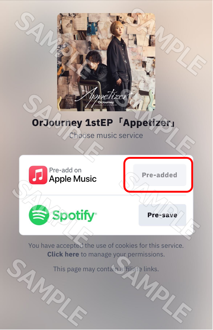 ※上記サンプル画像はApple MusicでPre-addした場合の表示画面